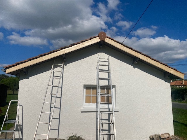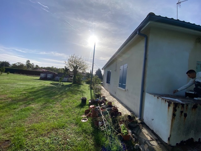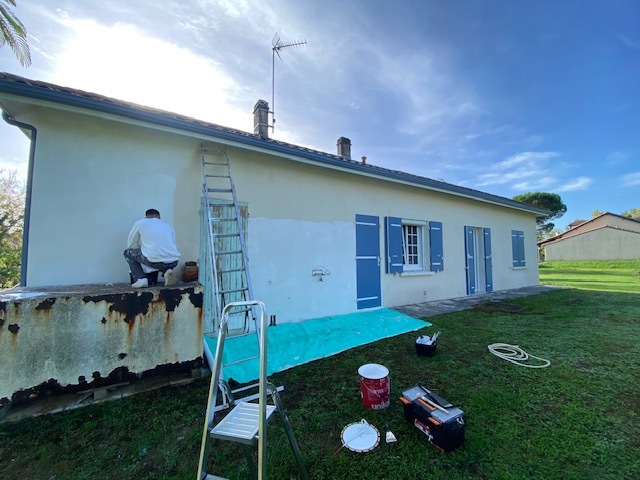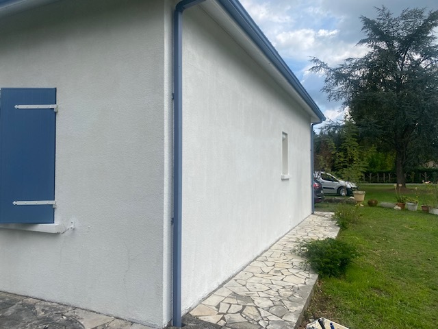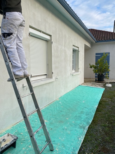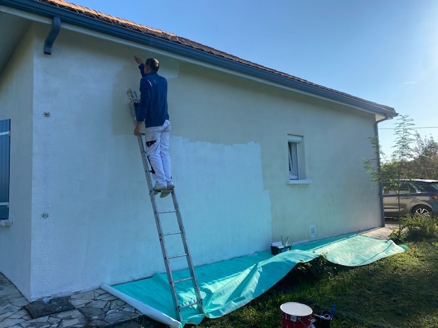 Peinture de façade réalisée avec une couche primaire et deux couches de finition Dompierre Uni KaloAvant / Après
